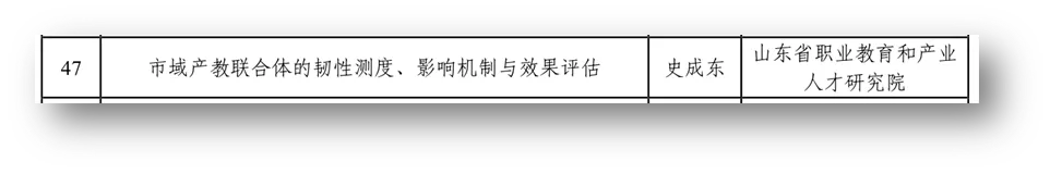 近日,中国高等教育学会官网公布了《中国高等教育学会关于公布“2025年度高等教育科学研究规划课题”立项名单的通知》,山东省职业教育和产业人才研究院副院长侯庆来申报的《高等学校与职业院校、企业联合开展职业教育教师一体化培养培训实践研究》获批“教育强国建设背景下高校教师发展与培训体系创新研究”专题立项。教育部职业教育发展中心官网公布了《关于公布教育部职业教育发展中心2024年职业教育理论与实践研究支持课题立项名单、预研名单的通告》,研究院职业教育研究部主任史成东教授申报的《市域产教联合体的韧性测度、影响机制与效果评估》获批预研立项。