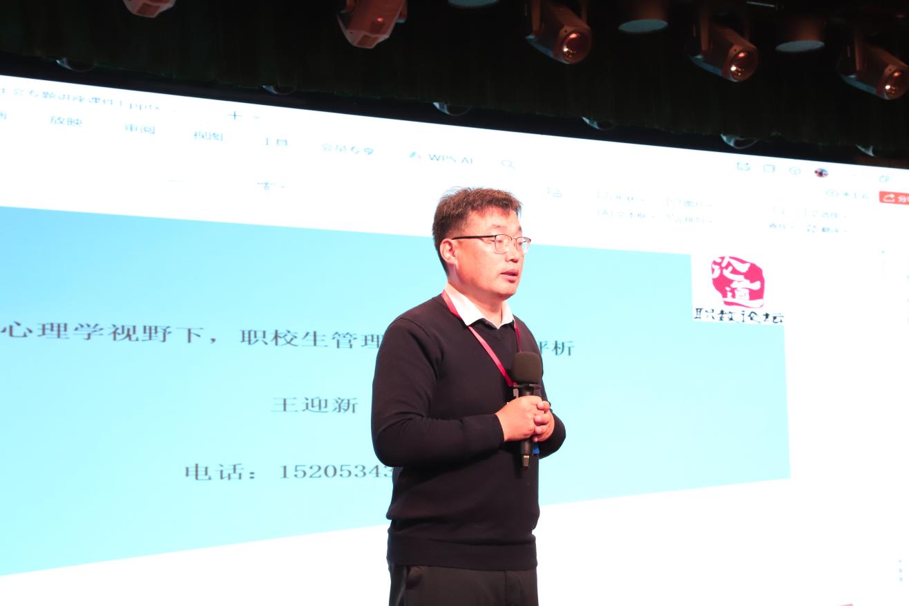 30日上午的主论坛由研究会副会长张林丽主持,齐河县职业中专高级讲师王迎新作了《心理学视野下的职校生管理与典型案例评析》专题报告。