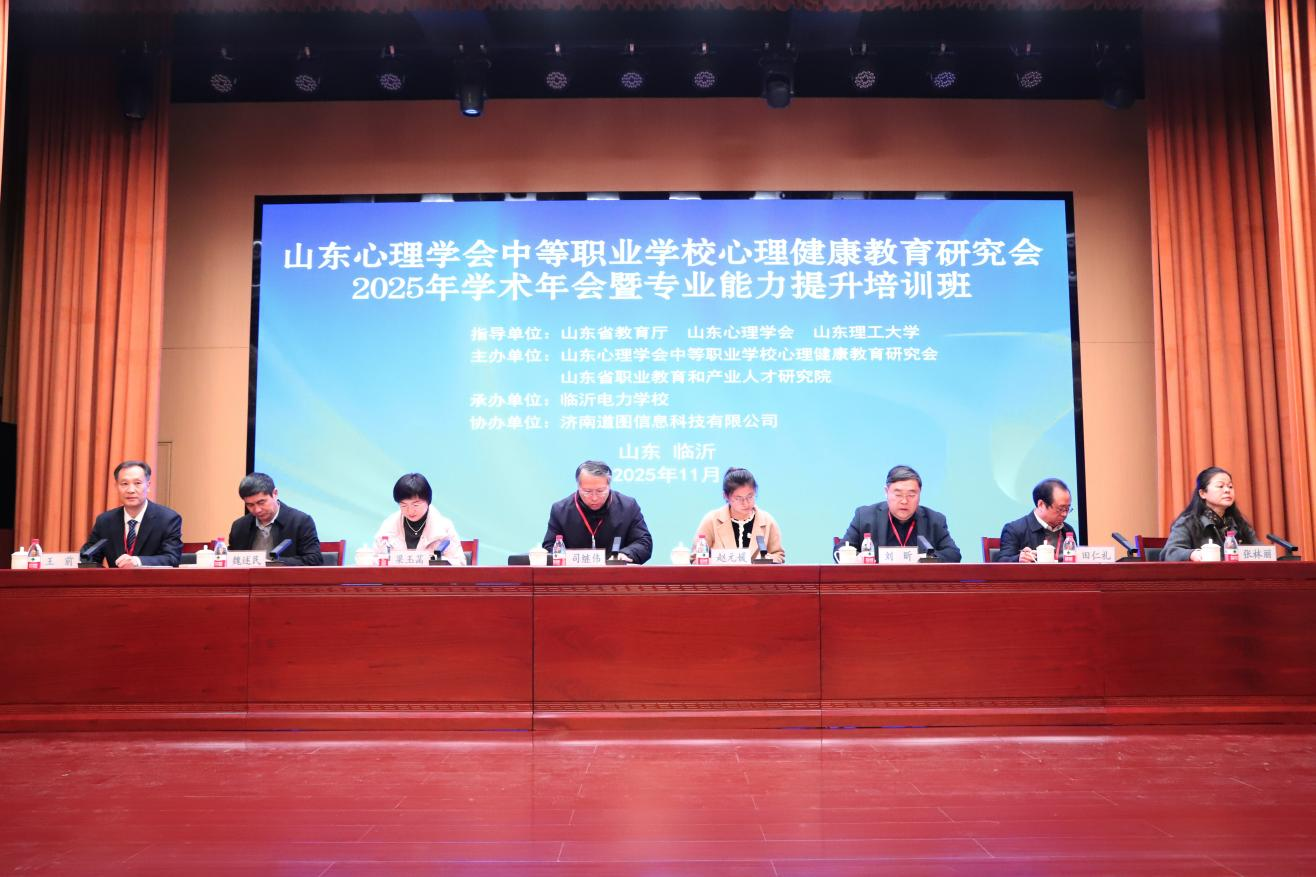 11月29日至30日,山东心理学会中等职业学校心理健康教育研究会2025年学术年会暨专业能力提升培训班在山东临沂成功举办,本次年会由山东省教育厅、山东心理学会和山东理工大学指导,中职心理健康教育研究会和省职业教育和产业人才研究院联合主办,临沂电力学校承办,济南道图信息科技有限公司协办,来自省内外专家学者、教育部门负责人及中职学校的领导和心理健康教师等240余人参加会议。