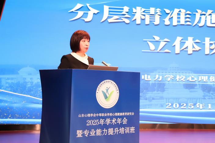 本次年会以“数智赋能未来 心育护航成长”为主题,聚焦心理健康教育与数字技术的深度融合,为全省中职学校心理健康教育工作注入新动力。山东省教育厅职业教育处三级主任科员赵元媛,山东心理学会副理事长、山东师范大学教授司继伟,临沂市教育局职成科科长梁玉菡,临沂电力学校党支部书记、校长王前等出席会议,研究会会长刘昕主持会议。