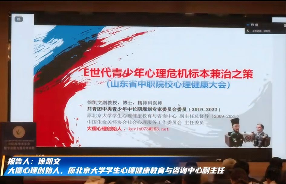 29日上午的主论坛由研究会副会长田仁礼主持。大儒心理创始人、原北京大学学生心理健康教育咨询中心副主任徐凯文作了《E世代青少年心理危机标本兼治之策》专题报告。下午的主论坛由研究会副会长魏述民、王前主持。山东心理学会副理事长、山东师范大学三级教授司继伟,浙江大学二级教授、中国心理卫生协会常务理事兼学术委员会副主任马建青,天津市学术心理健康教育发展中心副主任、天津师范大学副教授周广东分别作了《积极心理视角下青少年职业心理成长与干预》《AI赋能学生心理健康教育的实践探索》--以心理健康教育数字教材和“AI心理一点通”为例》《AI赋能心理健康教育》专题报告。