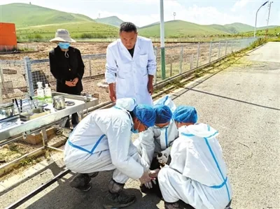 山东畜牧兽医职业学院师生在青海牧场进行选育采样。