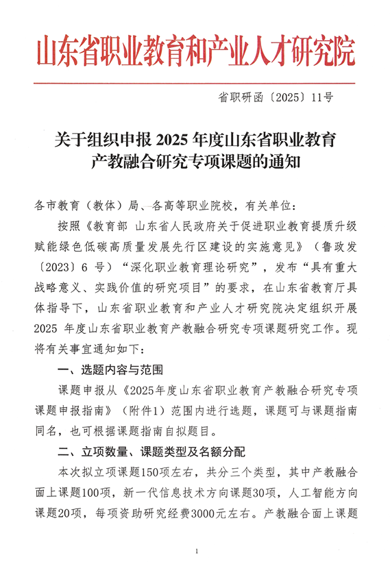 过去的2025年,山东省职业教育和产业人才研究院紧密围绕国家产教融合战略与山东省“十强”产业发展需求,以“服务产业、引领职教、赋能区域”为使命,在山东省教育厅和山东理工大学的指导下,开展了一系列具有开创性、实效性与影响力的重点工作,在政策研究、平台建设、资源协同、产教融合、实践创新等方面取得突破性进展,为推动山东职业教育提质升级与产业高质量发展提供了有力支撑。